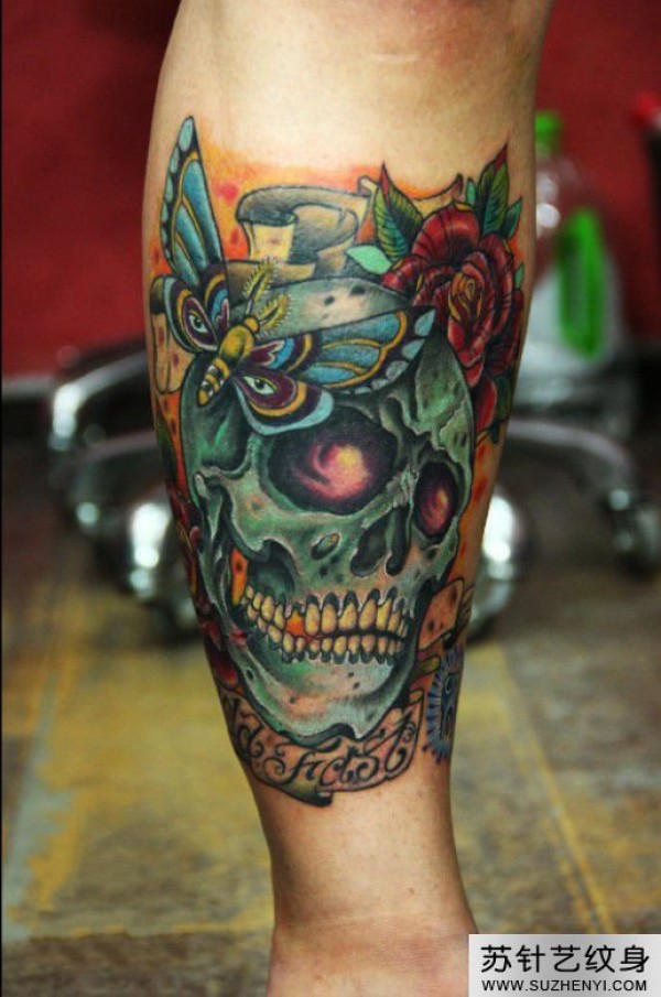 小腿欧美骷髅纹身_骷髅纹身图案大全_纹身图吧