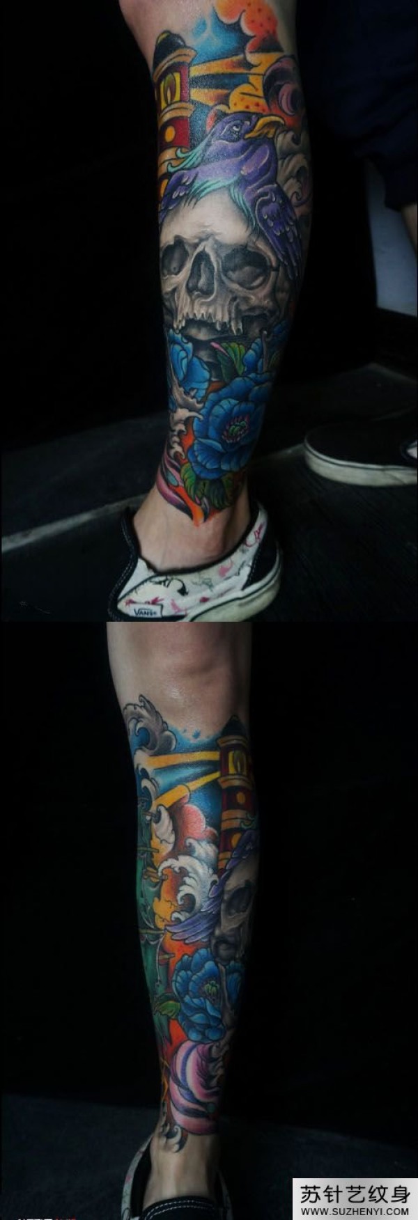 个性花腿欧美骷髅纹身_骷髅纹身图案大全_纹身图吧