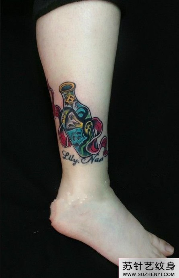 小骷髅瓶小腿纹身_骷髅纹身图案大全_纹身图吧
