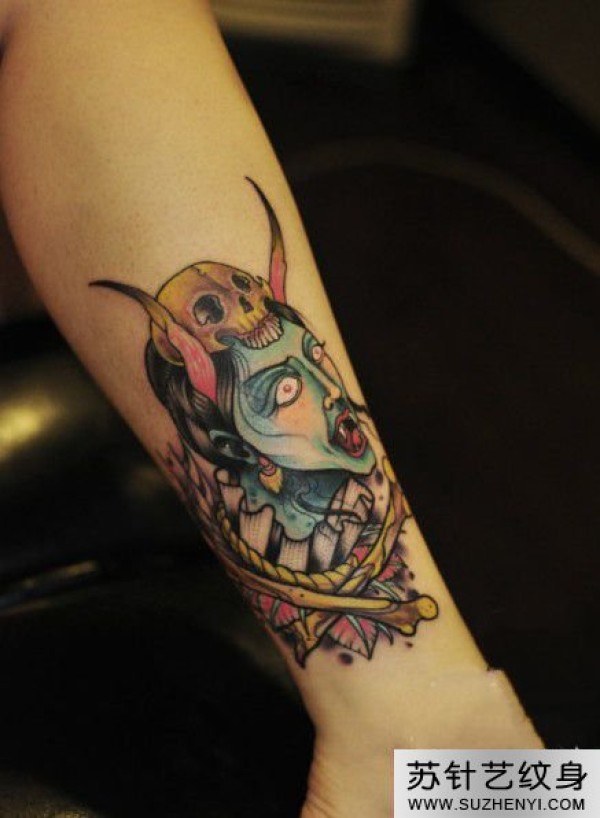 小腿恶魔骷髅纹身_骷髅纹身图案大全_纹身图吧