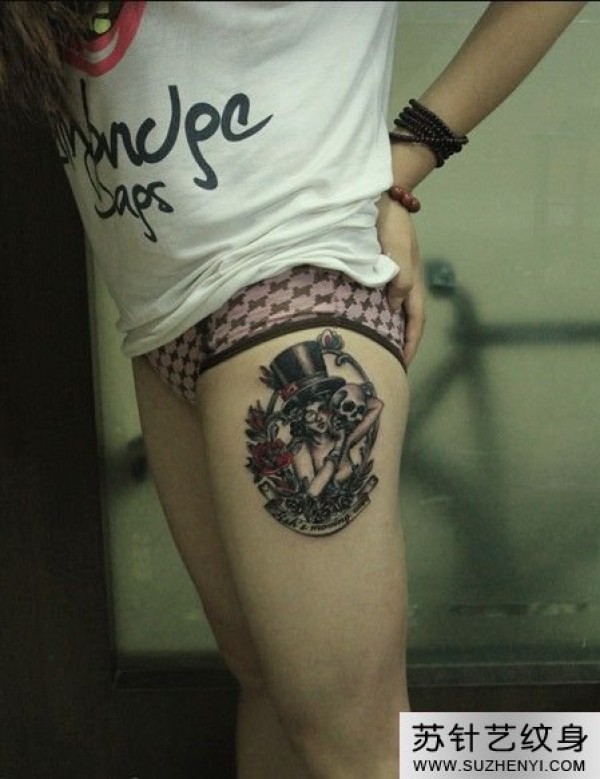 骷髅大腿纹身_骷髅纹身图案大全_纹身图吧