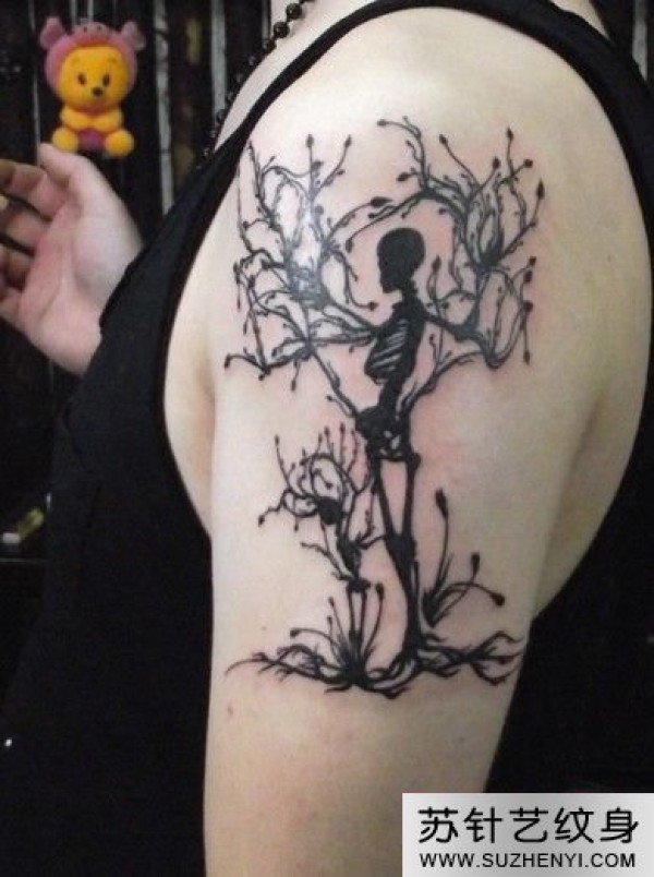 手臂个性骷髅树纹身_骷髅纹身图案大全_纹身图吧