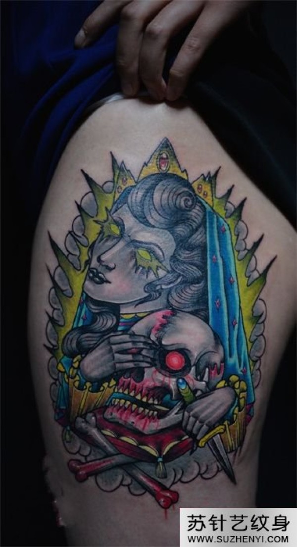 女神与骷髅大腿纹身_骷髅纹身图案大全_纹身图吧
