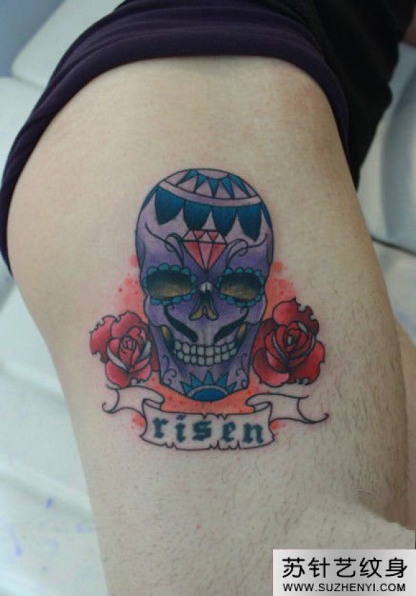 大腿花骷髅纹身_骷髅纹身图案大全_纹身图吧