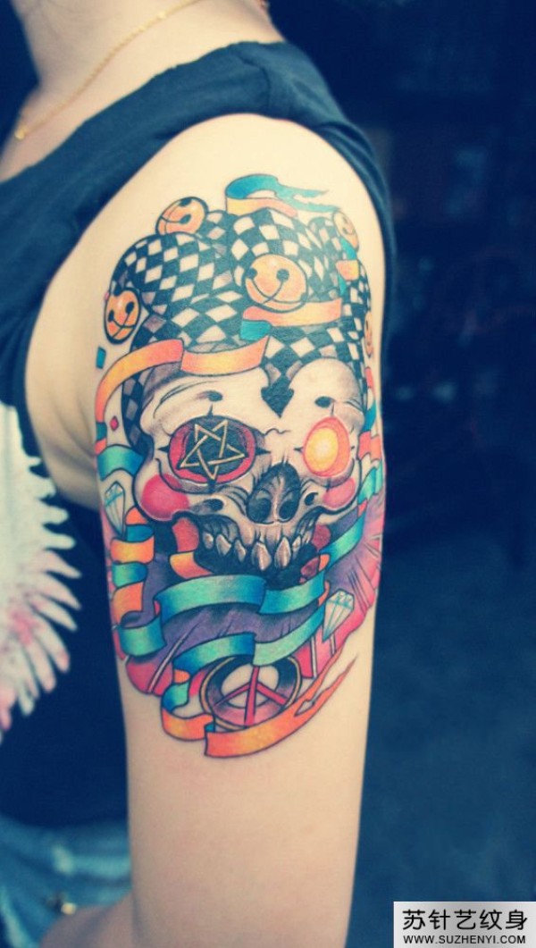 骷髅小丑欧美手臂纹身_骷髅纹身图案大全_纹身图吧