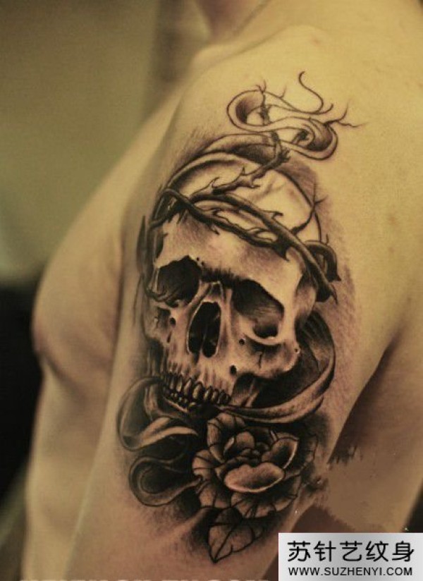 肩部五芒星骷髅纹身_骷髅纹身图案大全_纹身图吧