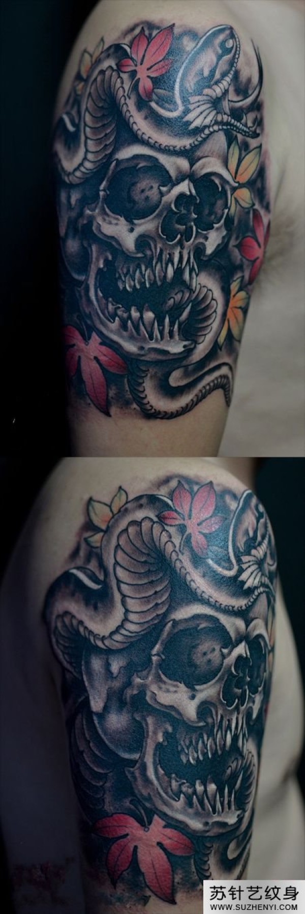 眼镜蛇骷髅欧美纹身_骷髅纹身图案大全_纹身图吧