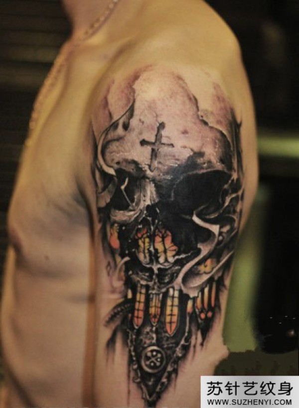 肩部五芒星骷髅纹身_骷髅纹身图案大全_纹身图吧