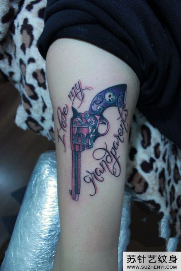 枪骷髅英文纹身_骷髅纹身图案大全_纹身图吧