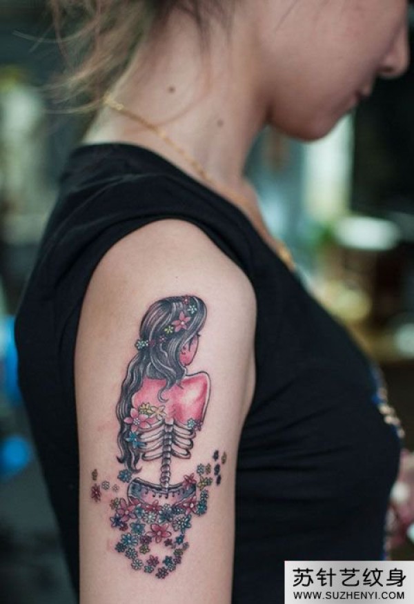 骷髅美女头像手臂纹身_骷髅纹身图案大全_纹身图吧