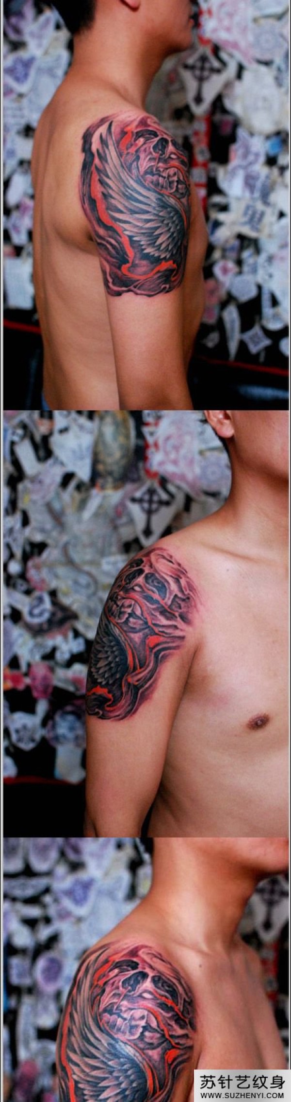肩部五芒星骷髅纹身_骷髅纹身图案大全_纹身图吧