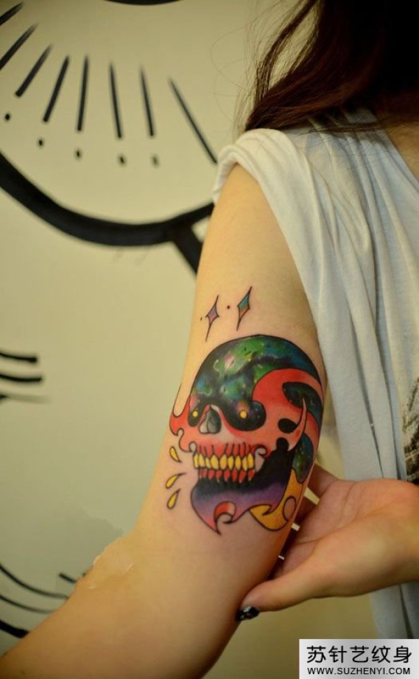 炫彩星空骷髅手臂纹身_骷髅纹身图案大全_纹身图吧