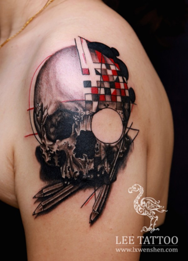 肩部五芒星骷髅纹身_骷髅纹身图案大全_纹身图吧