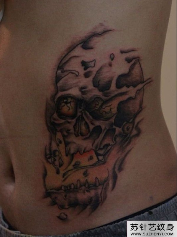 欧美骷髅腰部纹身_骷髅纹身图案大全_纹身图吧