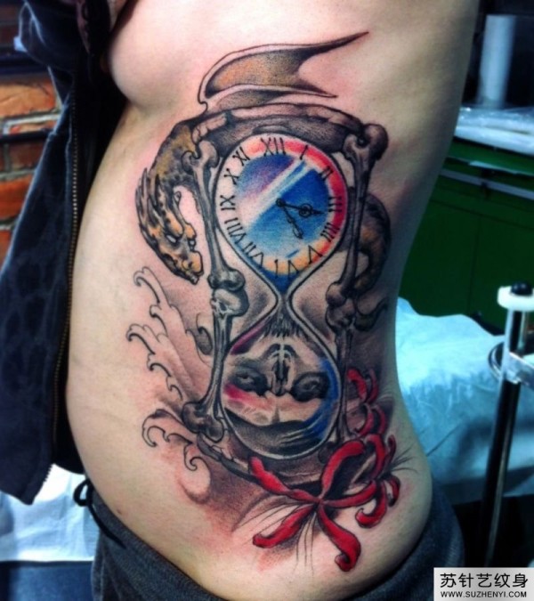 骷髅时间沙漏腰部纹身_骷髅纹身图案大全_纹身图吧