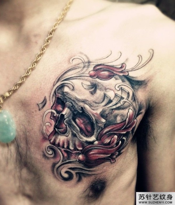 胸口欧美风格骷髅纹身_骷髅纹身图案大全_纹身图吧