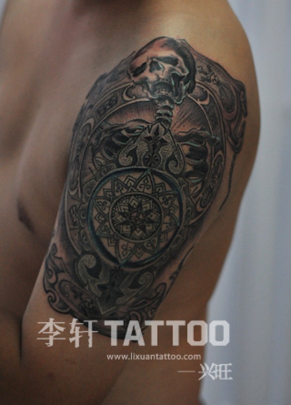 肩部五芒星骷髅纹身_骷髅纹身图案大全_纹身图吧