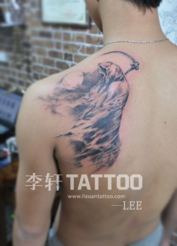 李轩作品死神纹身骷髅图案_骷髅纹身图案大全_纹身图吧