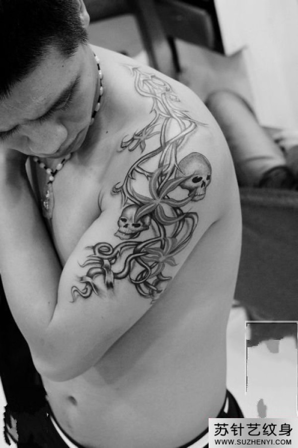 肩部五芒星骷髅纹身_骷髅纹身图案大全_纹身图吧