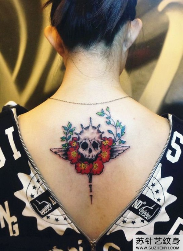 背部骷髅翅膀纹身_骷髅纹身图案大全_纹身图吧