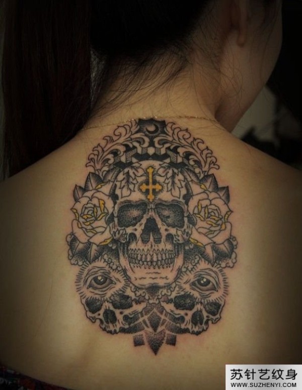 女生背上霸气骷髅头眼睛欧美刺青图_骷髅纹身图案大全_纹身图吧