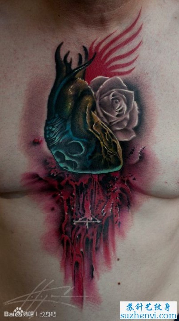 超酷的骷髅心脏纹身图案_骷髅纹身图案大全_纹身图吧