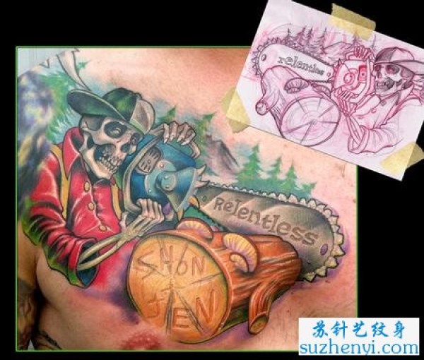 骷髅锯齿纹身_骷髅纹身图案大全_纹身图吧