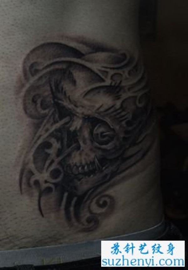 腰部骷髅纹身图案纹身图片_骷髅纹身图案大全_纹身图吧