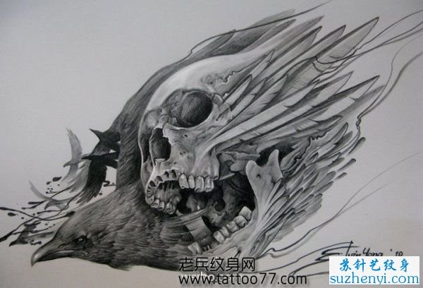 超酷的骷髅乌鸦纹身图案_骷髅纹身图案大全_纹身图吧