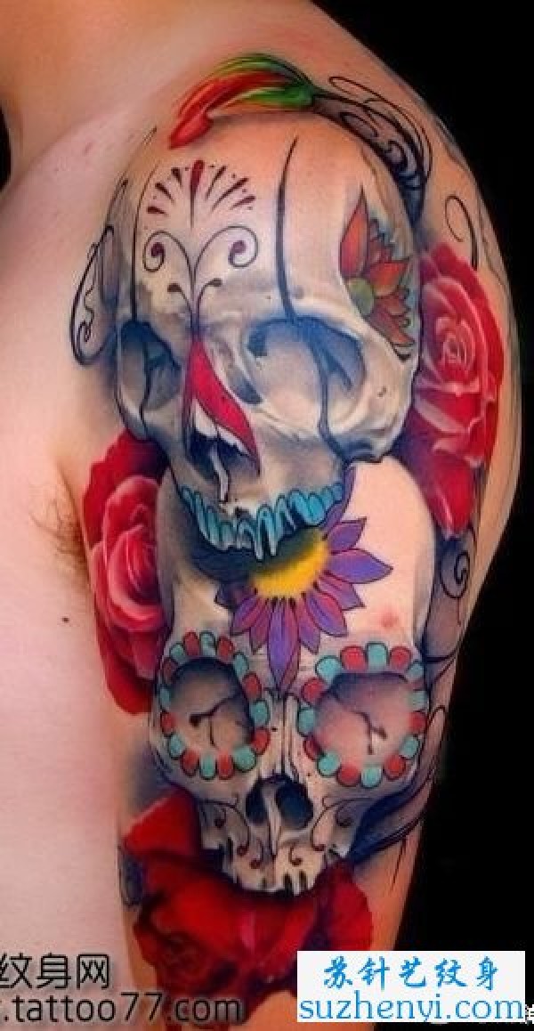 肩部五芒星骷髅纹身_骷髅纹身图案大全_纹身图吧