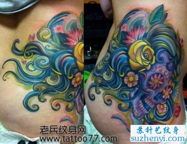 腰部欧美骷髅纹身图案_骷髅纹身图案大全_纹身图吧