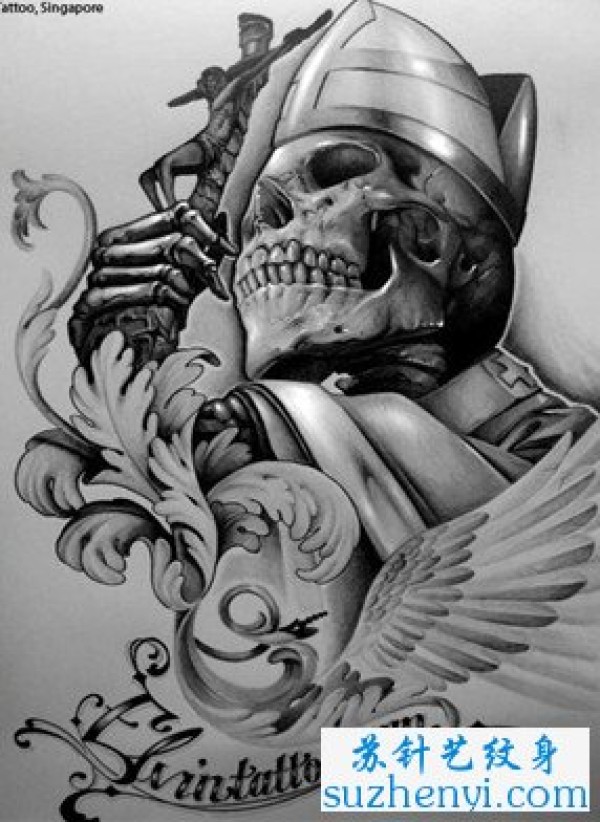 素描骷髅头翅膀纹身图案图片_骷髅纹身图案大全_纹身图吧