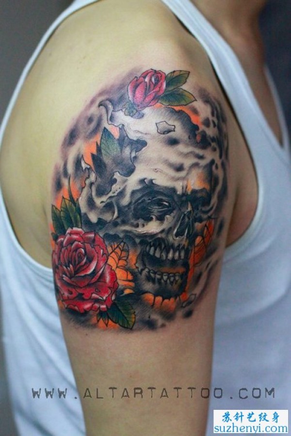 肩部五芒星骷髅纹身_骷髅纹身图案大全_纹身图吧