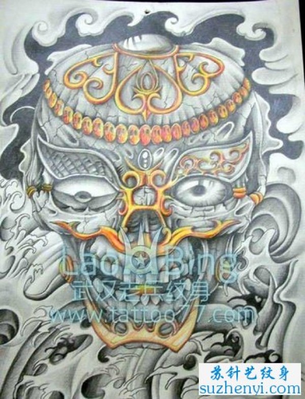 背部戴皇冠的骷髅纹身_骷髅纹身图案大全_纹身图吧