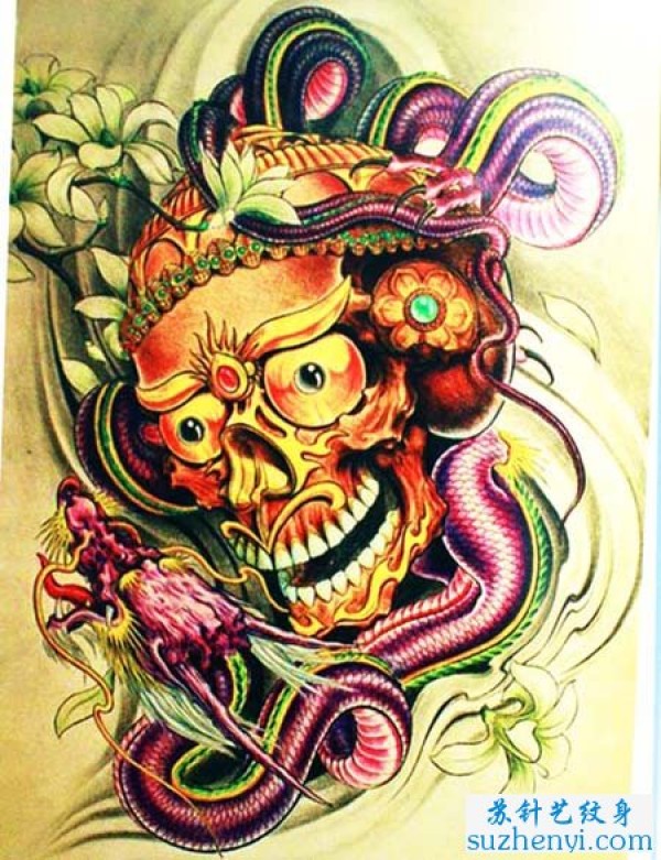 传统嘎巴拉龙纹身_骷髅纹身图案大全_纹身图吧