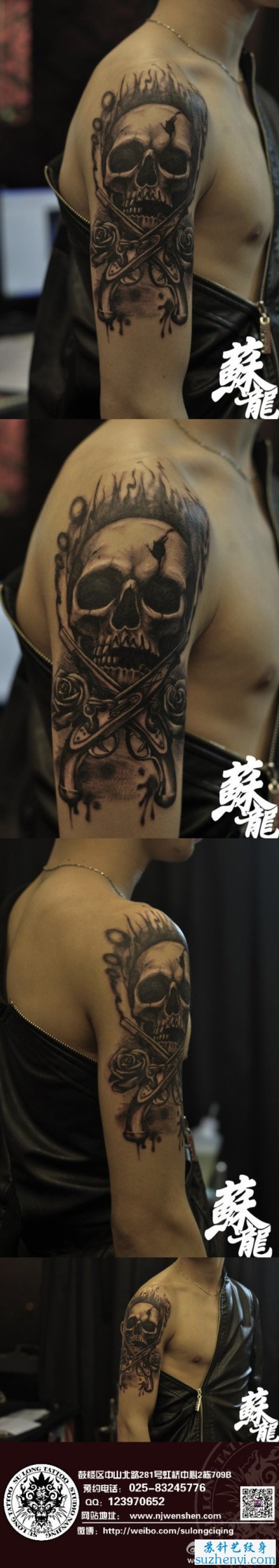肩部五芒星骷髅纹身_骷髅纹身图案大全_纹身图吧