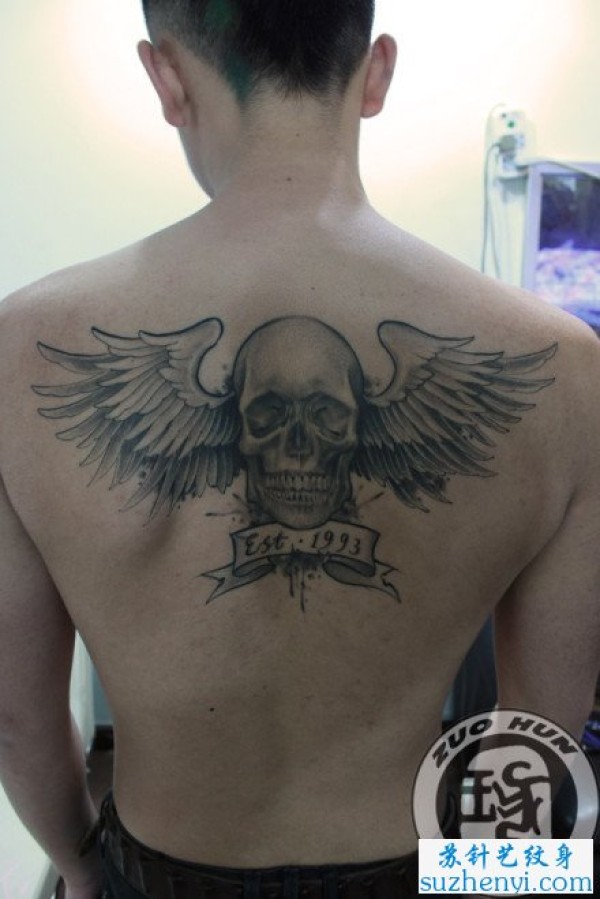 背部骷髅翅膀纹身_骷髅纹身图案大全_纹身图吧