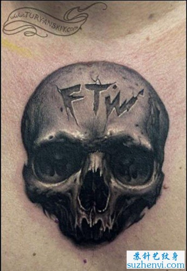 黑灰写实的骷髅纹身图案_骷髅纹身图案大全_纹身图吧