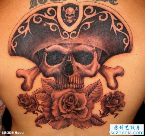 背部的海盗骷髅纹身图案_骷髅纹身图案大全_纹身图吧