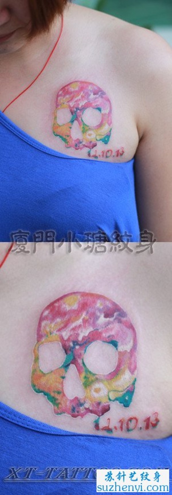 漂亮的彩色骷髅纹身图案_骷髅纹身图案大全_纹身图吧