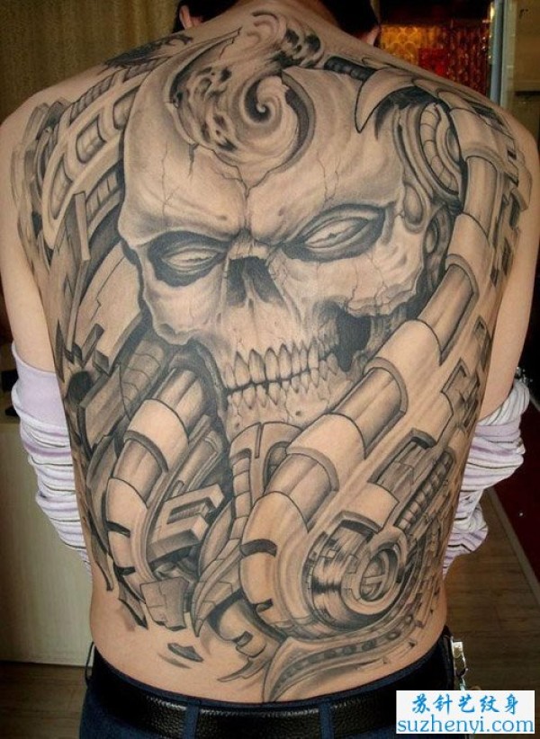 满背欧美写实骷髅纹身_骷髅纹身图案大全_纹身图吧