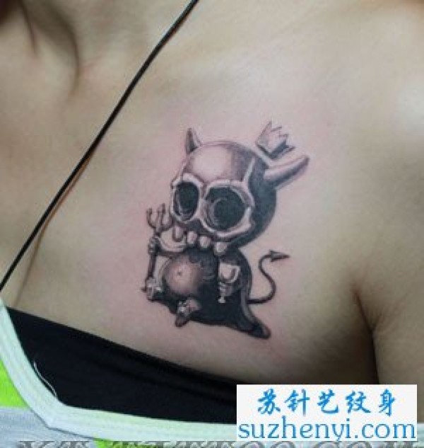 女生胸部骷髅恶魔纹身图片_骷髅纹身图案大全_纹身图吧