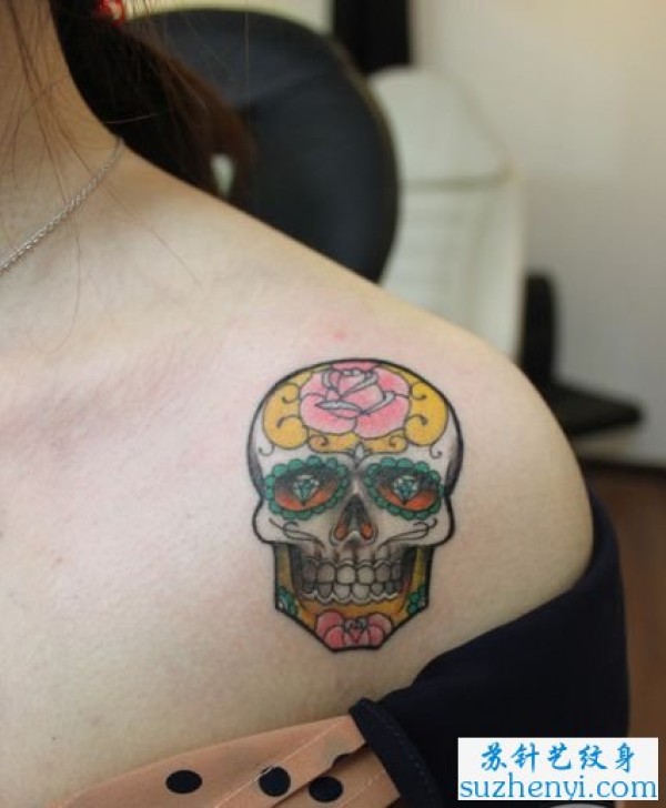肩部流行时尚的骷髅纹身图案_骷髅纹身图案大全_纹身图吧