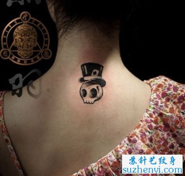 颈部可爱的小骷髅纹身图案_骷髅纹身图案大全_纹身图吧