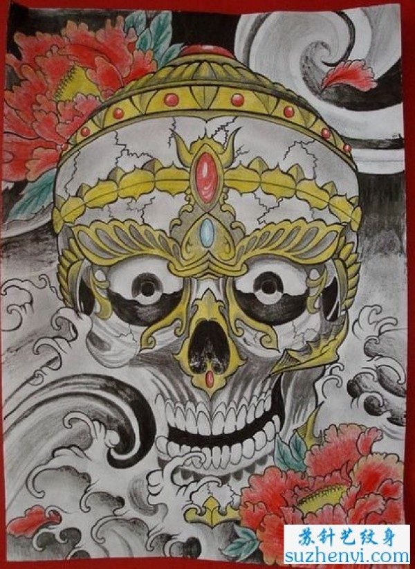 彩色嘎巴拉牡丹花纹身图案纹身_骷髅纹身图案大全_纹身图吧