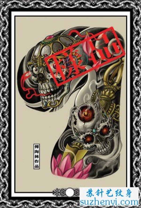 半胛嘎巴拉金刚杵纹身_骷髅纹身图案大全_纹身图吧