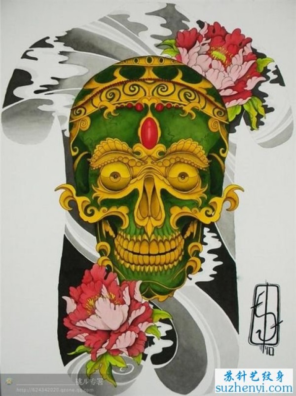 满背嘎巴拉牡丹纹身_骷髅纹身图案大全_纹身图吧