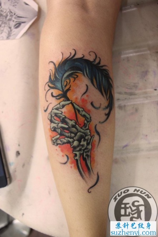 骷髅手与羽毛纹身_骷髅纹身图案大全_纹身图吧