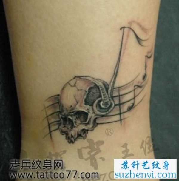 腿部骷髅音符纹身_骷髅纹身图案大全_纹身图吧