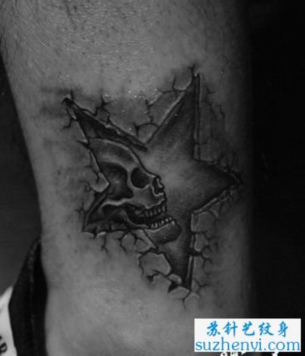 腿部烙印五角星骷髅纹身_骷髅纹身图案大全_纹身图吧